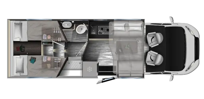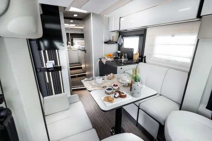 Un camping-car profilé compact qui combine parfaitement luxe et facilité d’utilisation. Avec sa largeur réduite de 2,15 m et sa longueur allant jusqu’à 6,99 m, il est particulièrement maniable — idéal pour voyager en toute fluidité.