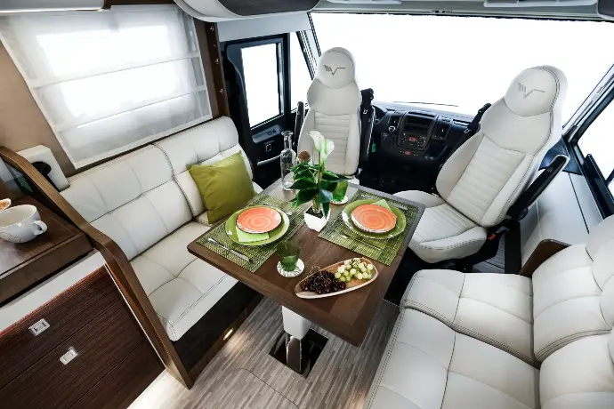 De série, vous bénéficiez d’un équipement complet : un grand réfrigérateur de 150 litres, jusqu’à 120 litres d’eau propre, un puissant chauffage Combi Diesel de 6 kW et des finitions intérieures haut de gamme au style italien.
