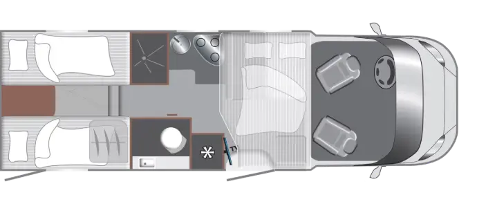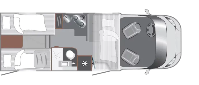 Deze lichtgewicht Tourer-serie motorhome heeft een praktische indeling voor 3 personen, een stijlvol interieur en geavanceerde veiligheidstechnologie, ideaal voor korte en lange reizen.